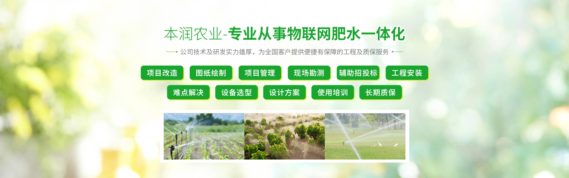 “用心做事,本潤農業(yè)”追求無止境,學習無止境,創(chuàng)新無止境,本潤農業(yè)將為您打造最專業(yè)最有保障的現代灌溉技術工程